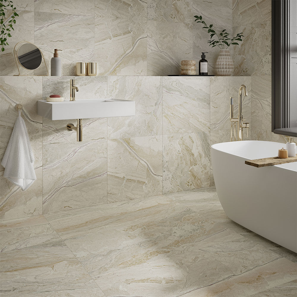 Elevate your space with the luxurious Earthsong collection of marble/stone-effect porcelain tiles. Available in three sizes and a matching mosaic, these tiles feature a smooth matt finish and rectified edges for a sleek, professional look. Durable, low-maintenance, and highly realistic, Earthsong offers the elegance of marble at a fraction of the price, perfect for creating a high-end, contemporary design.
