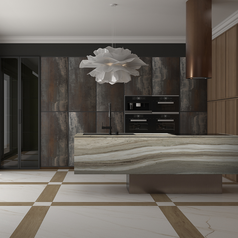 The Lucca series is inspired by the historical and architectural beauty of the Italian city that lends it its name, renowned for its classic, refined elegance. This marble stands out for its pronounced golden veining, which brings luminosity and a distinctive character to every piece.
