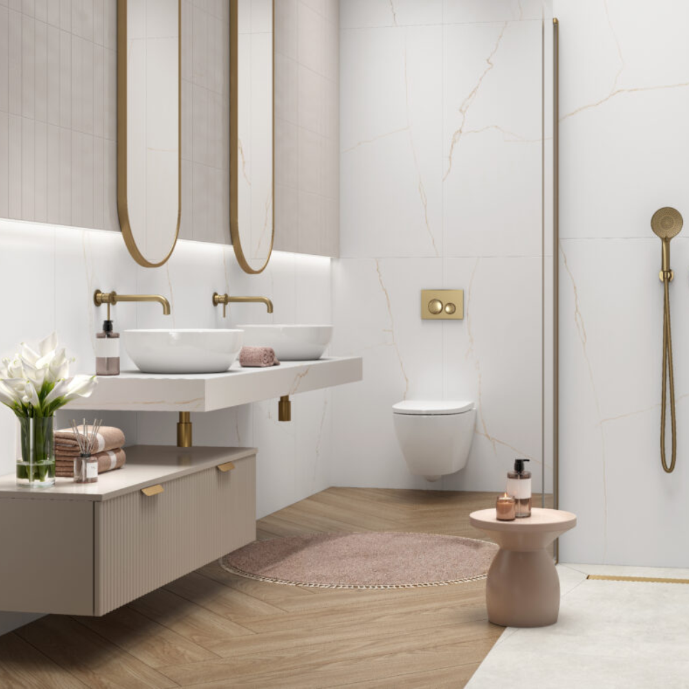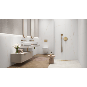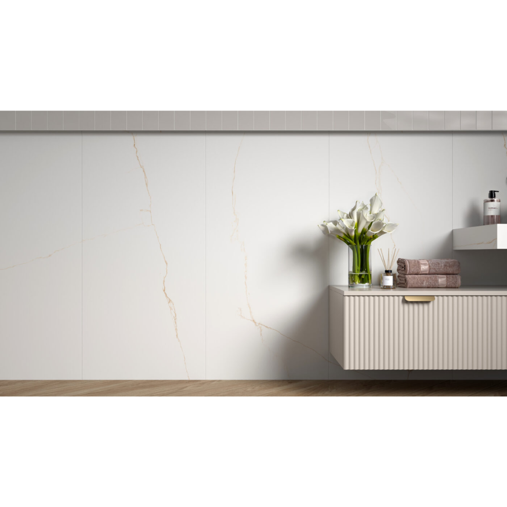 The Lab. Bianco Mare series stands out for its large 120×120 and 60×120 cm porcelain stoneware formats, inspired by the purest marble. The prestige of an eternal material with expressive veining is underlined by the lappato finish, without reflections, soft to the touch, suitable for flooring and cladding even in problematic environments such as the bathroom and kitchen, for its resistance to humidity and ease of cleaning.